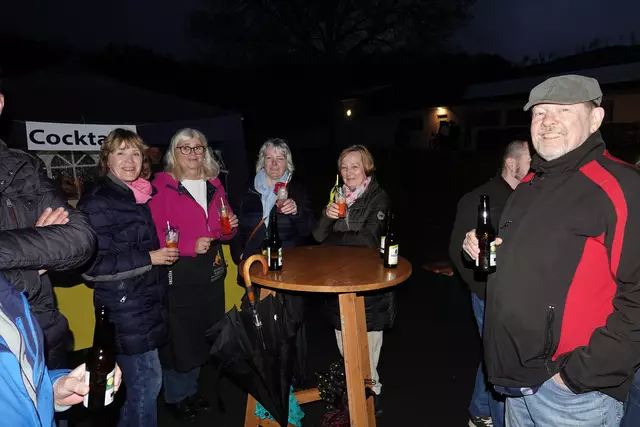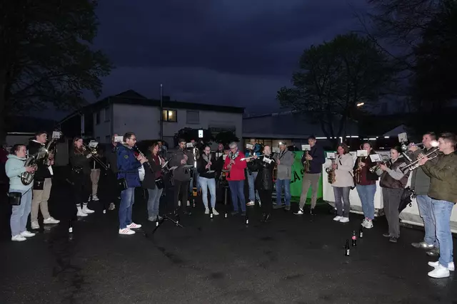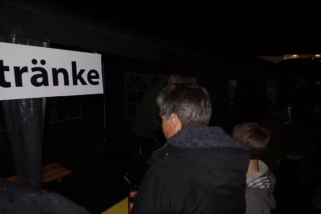 Der Musikverein Oeventrop begleitete musikalisch den Abend, auch wenn sie sich mit ihren Instrumenten bei dem immer wieder einsetzten Regen kurz im Eingangsbereich der Oase unterstellen mussten. Die ca. 450 Besucher, waren entsprechend mit Regenkleidung und Schirmen ausgestattet und genossen den schönen Abend.