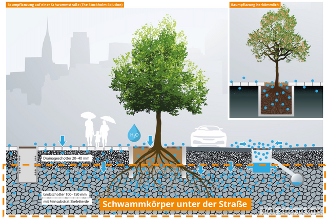 Der Schwamm unter der Straße ist die Voraussetzungen für mehr Grün und größere Stadtbäume