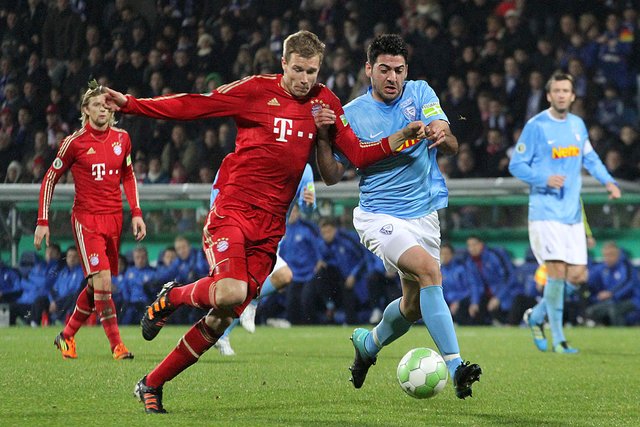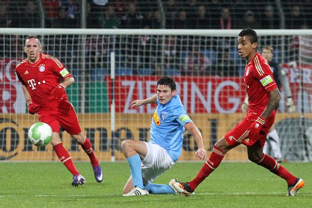 Derart engagiert und geschickt agierte der Zweitligist gegen den klaren Favoriten, dass Bayern-Coach Jupp Heynckes schon zur Pause mit Gomez für Olic und Alaba für Luiz Gustavo zwei Wechsel vornahm und nach 67 Minuten sein Kontingent erschöpft hatte. Auch VfL-Coach Andreas Bergmann tauschte recht früh und mutig, als er neben dem starken Paul Freier zudem noch Daniel Ginczek für die Offensive brachte.