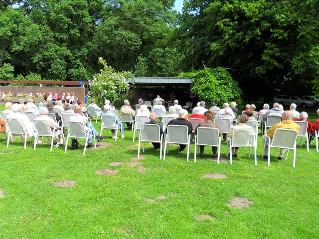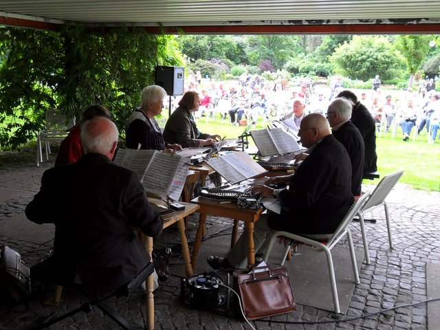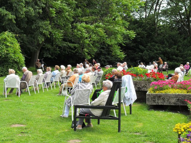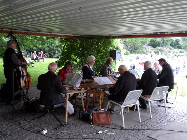 Gestern war das Zitherorchester Niederrhein im Jubiläumshain zu Gast und stellte den zahlreichen Besuchern das eher seltene Instrument Zither vor. Unter der Leitung von Horst Jakob, der auch ein eigenes Zitherlied komponiert hat, wurden u. a. zahlreiche Marsch- und Walzermelodien gespielt. Zum Abschluß des Konzertes und als Zugabe wurde dann das wohl bekannteste Zitherstück aus dem Film "Der dritte Mann" zum Besten gegeben. Sehr zur Freude der Zuhörer/-innen natürlich.