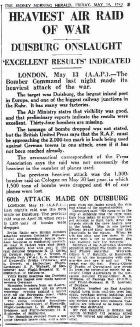 Der Genfer Korrespondent des „Daily Express“ erklärt zu dem großen RAF Angriff vom 12. Mai 1943, das bei diesem Duisburg „plattgemacht und zerschlagen“ wurde.