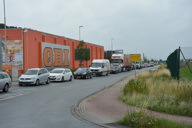 Von dort geht es weiter durch Praest und Vrasselt. Hier kann es dann in Vrasselt schon zum ersten Stau kommen. Vor allem dann, wenn man an der Duisburger Straße rechts abbiegen will, um wieder in Richtung Autobahn zu gelangen. Teilweise ging da für Minuten überhaupt nichts mehr. Stoßstange an Stoßstange reihte sich die Blechlawine die Straße entlang. Dann, für kurze Zeit, bewegte sich etwas. Ein paar Autos kamen ein paar Meter weit, dann der nächste Stillstand.