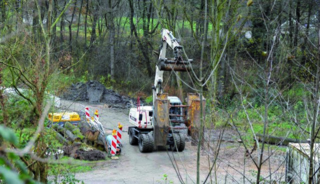Alfred Runge kann beruhigt sein, auf seine Ohren ist Verlass. Seit knapp 10 Tagen wird im Hexbachtal wieder gearbeitet. Pumpen laufen auf Hochtouren, Bagger treiben Rohre und Anschlüsse in den Boden.