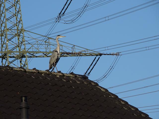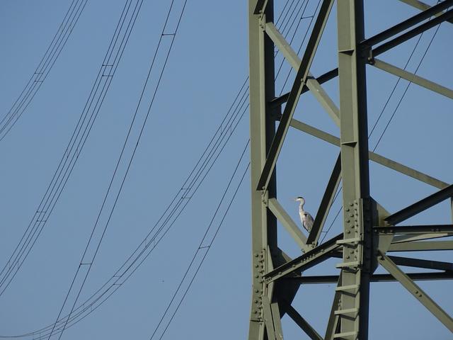 Auch am BorbeckerMühlenbach kann man den Graureiher regelmäßig antreffen. Dort ließ er sich auch im Mast einer Hochspannungsleitung ablichten. Ein Bild, das so sicherlich nur im Ruhrgebiet entstehen kann.