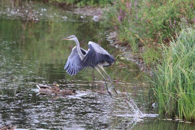 Mit einer Flügelspannweite von fast zwei Metern, einer Höhe von ca. einem Meter und einem Gewicht von 1bis 2 kg ist der Graureiher fast so groß wie ein Weißstorch und auch sein Flug wirkt ähnlich behäbig und kraftvoll wie der von Meister Adebar.