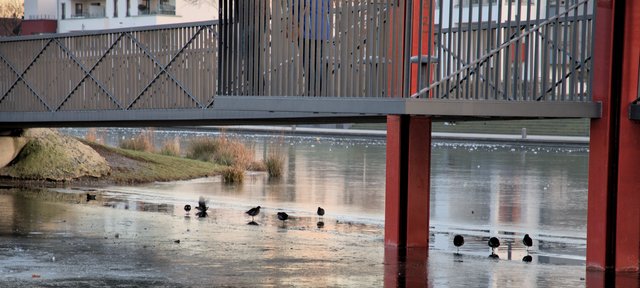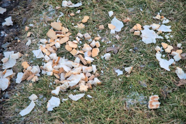 Leider gibt es Personen , die meinen, die Tiere benötigen in der kalten Zeit, etwas zu fressen. Sie legen Brotreste, Gott sei Dank, auf den Rasen und werfen die Brotreste nicht in den See. Das ist aber verboten, aber wen kümmert das -leider-.