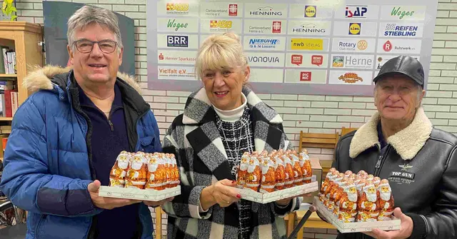 Der 6. Dezember kann kommen: Fünf Paletten Schokonikoläuse brachte das ehemalige Herner Prinzenpaar Hilmar Born (rechts) und Martina Arndt-Born mit, als es der Herner Tafel an der Bielefelder Straße zum achten Mal einen Besuch kurz vor Advent-Beginn abstattete. Alle Jahre wieder: Das karnevalistische Duo, das zwischen 2016 und 2018 die Herner Närrinnen und Narren anführte, hatte gleich zu Beginn seiner Regentschaft die hilfreiche Organisation ins Besuchsprogramm mit aufgenommen und bereitet...