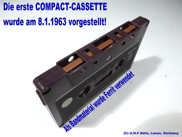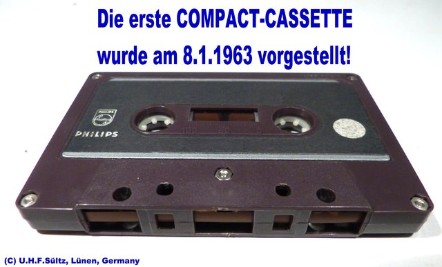 - Hier die tatsächlich erste Compact-Cassette aus der Technik- u. Satelliten- u. HiFi- Sammlung von Heinz Sültz und Uwe H. Sültz, Lünen!