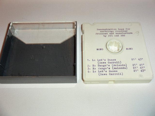 Auf der Einloch-Demonstrations-Cassette sind vier Musiktitel aufgespielt, u.a. LET’S DANCE von DAWE CARROLL – alles in MONO.