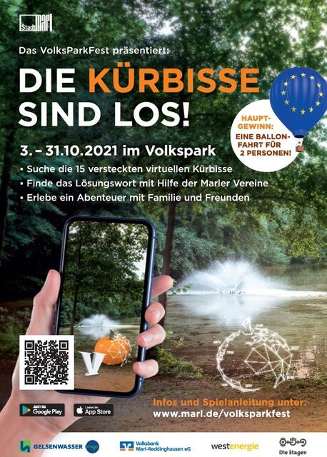 Noch bis Sonntag, 31. Oktober, können Besucherinnen und Besucher im Volkspark auf die Suche nach den insgesamt 15 virtuellen Kürbissen gehen. Mithilfe der App „VolksParkFest AR“ gilt es, die orangenen Gewächse und das Lösungswort zu finden. Auf die Teilnehmenden warten spannende Preise, unter anderem eine Fahrt mit einem Heißluftballon.