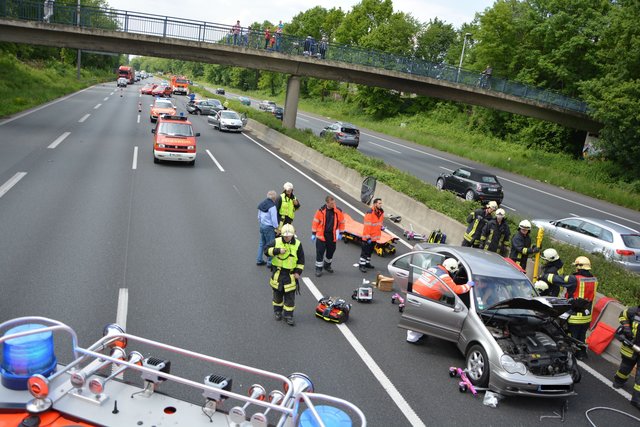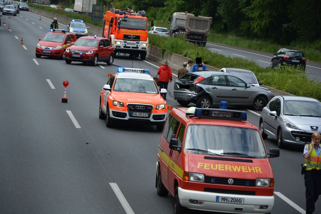 Fünf Verletzte bei Verkehrsunfall auf der A40 bei Duisburg