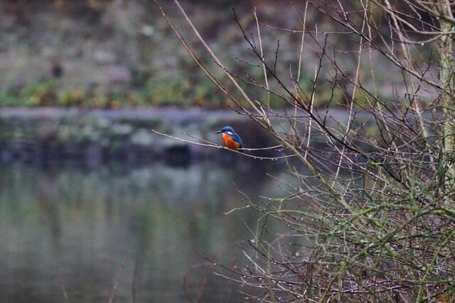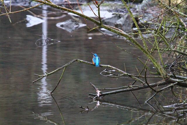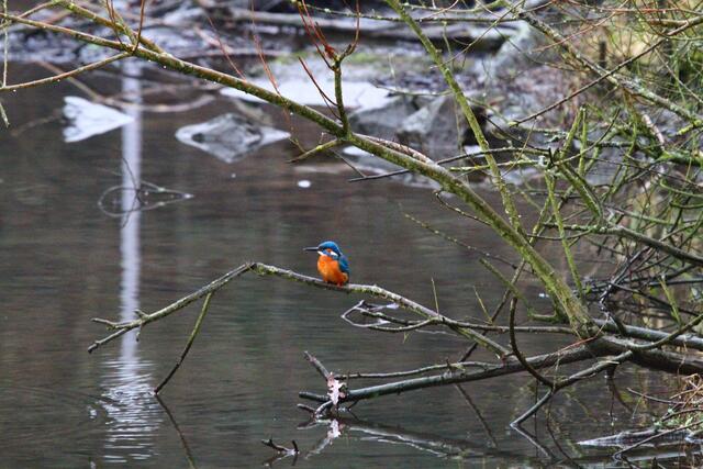 Eisvogel in der Nähe des Wehres.