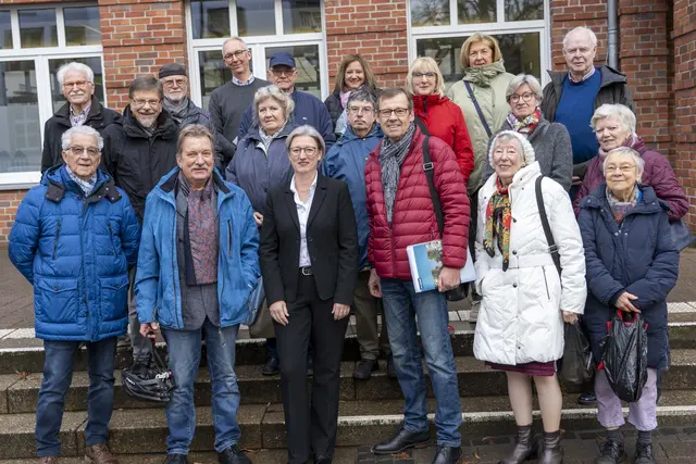 Foto: Anna Medvedev, Stadt Gladbeck Die Gruppe des Heimatvereins mit der Ordnungsdezernentin Marie-Antoinette Breil (Mitte vordere Reihe) und dem Vorsitzenden Dietrich Pollmann (rechts daneben). Seit Oktober 2023 ist sie als städtische Beigeordnete und Ordnungsdezernentin verantwortlich für Recht, öffentliche Ordnung, Feuerwehr und Kultur in Gladbeck. Vor kurzem kam Marie-Antoinette Breil im Rathaus mit einer Gruppe des Vereins für Orts- und Heimatkunde zu einem „Bürgergespräch“ zusammen,...