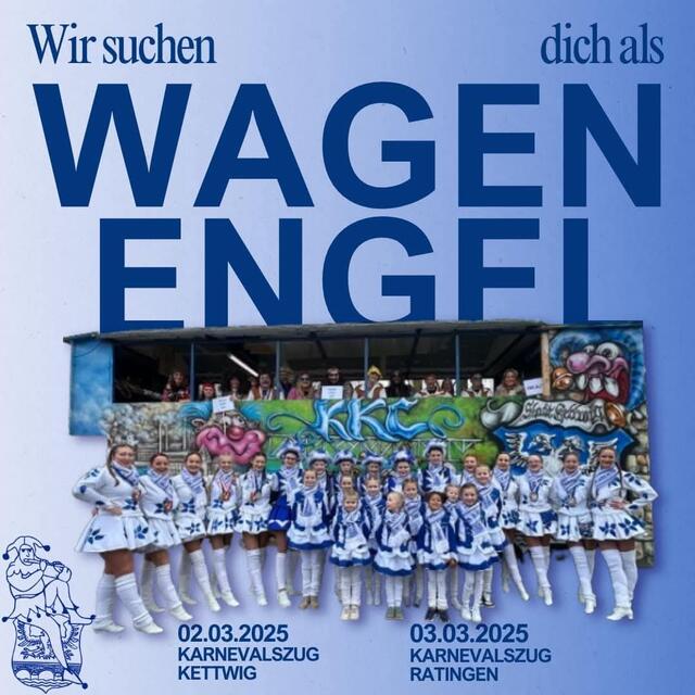 🚨 WIR SUCHEN WAGENENGEL FÜR DIE KARNEVALSZÜGE! 🚨 Begleite uns und unseren Karnevalswagen: 🎉 02.03.2025 – Karnevalszug Kettwig 🎉 03.03.2025 – Karnevalszug Ratingen Als Wagenengel sorgst du dafür, dass wir sicher und mit voller Karnevalsstimmung durch die Züge ziehen können. 🥳 Du bist über 18 und hast Lust dabei zu sein? Dann melde dich jetzt: 📞 Angelina: +49 1511 7509095 📲 Oder über unsere Social-Media-Kanäle! Alle Treffpunkte und Infos bekommst du nach deiner Anmeldung. Werde Teil unseres Teams...
