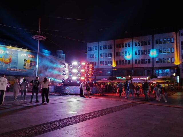 Während draußen vor der Marktkirche zahlreiche Menschen geduldig auf Einlass warten, bringen die DJs Henak und Matrapha drinnen den Boden des Gotteshauses mit ihren tragenden Beats sanft zum Schwingen. Schwarzlicht und fluoreszierende Klebebänder haben den Kirchraum der Marktkirche in ein begehbares Labyrinth verwandelt; von Zeit zu Zeit werden Segensworte gesprochen. „LICHT&SEGEN“ heißt das ökumenische Angebot, das in diesem Jahr erstmals Teil des Essen Light Festival ist und sehr gut...