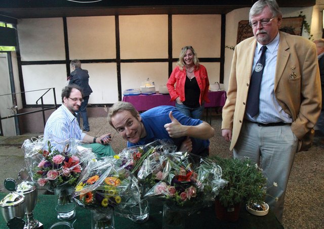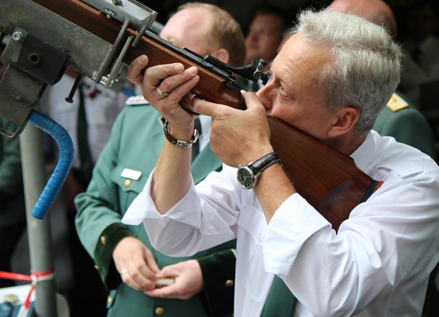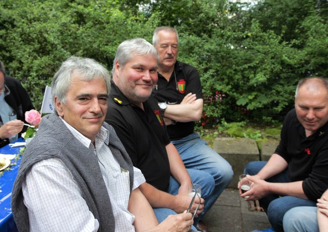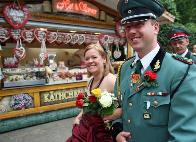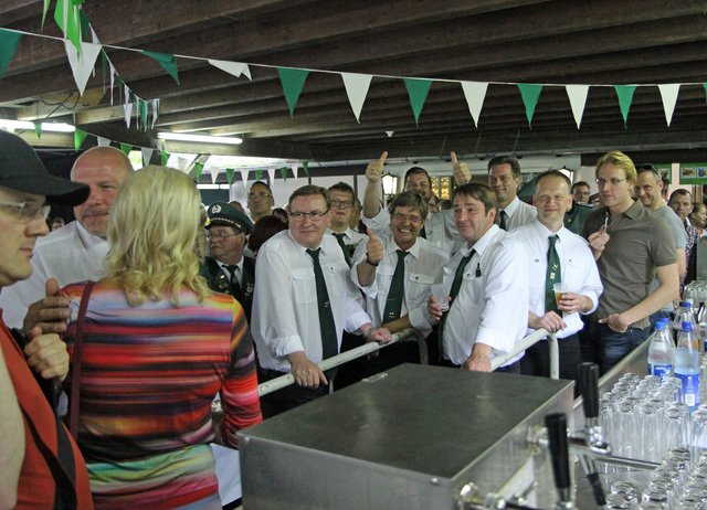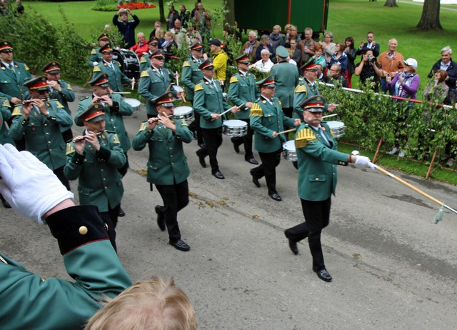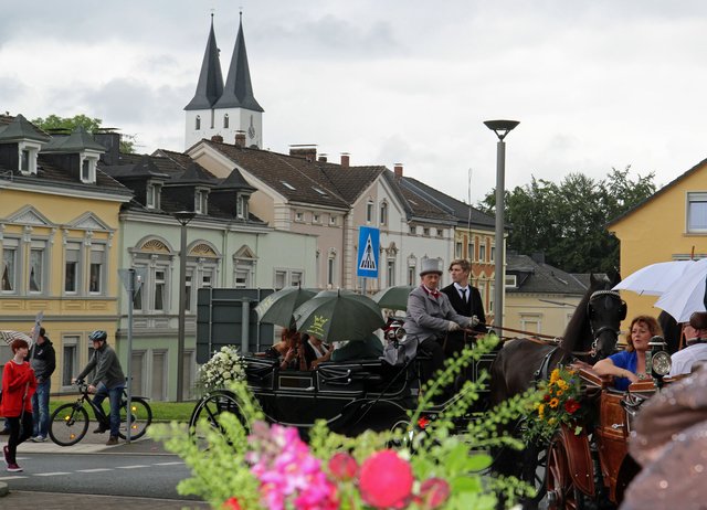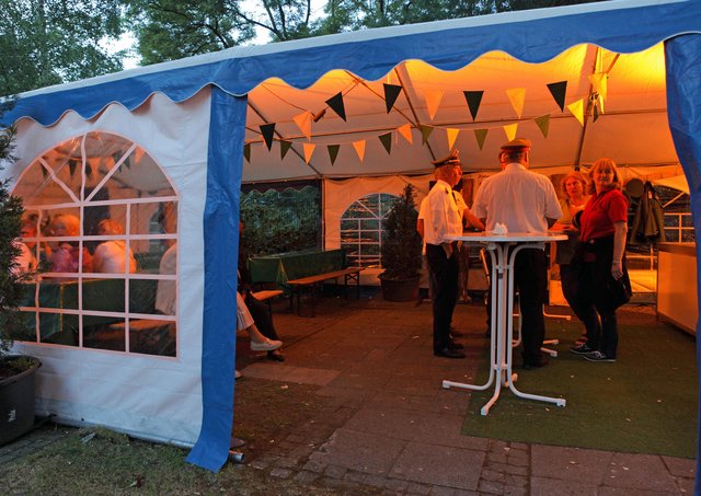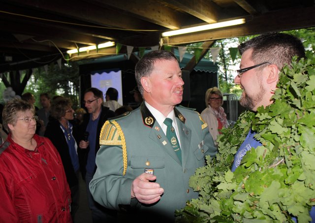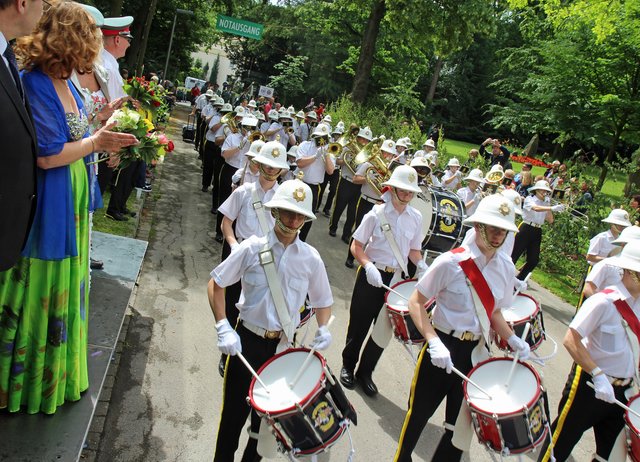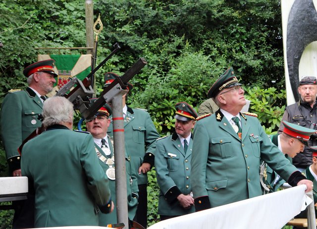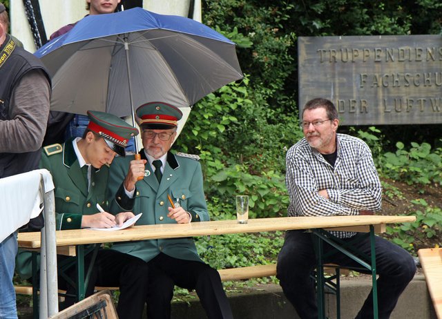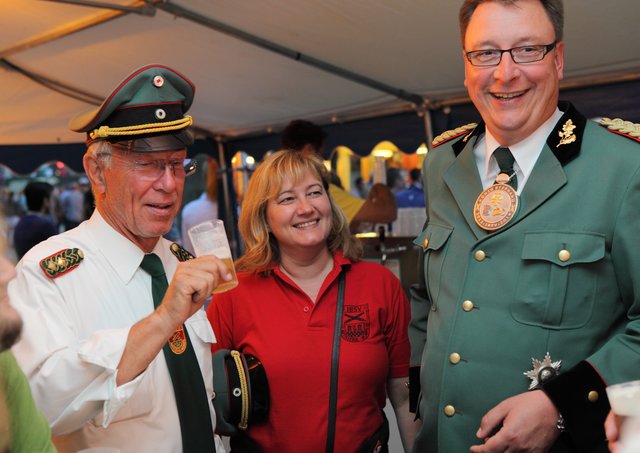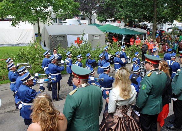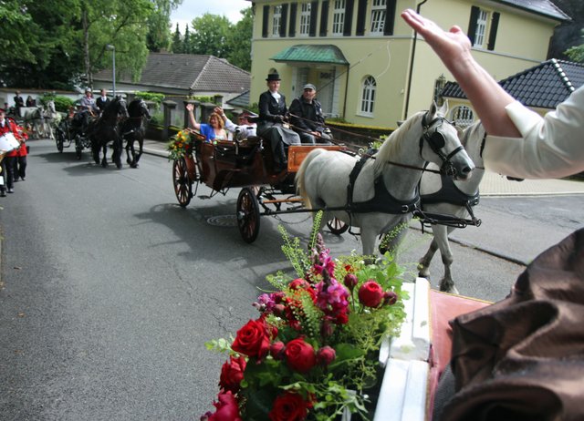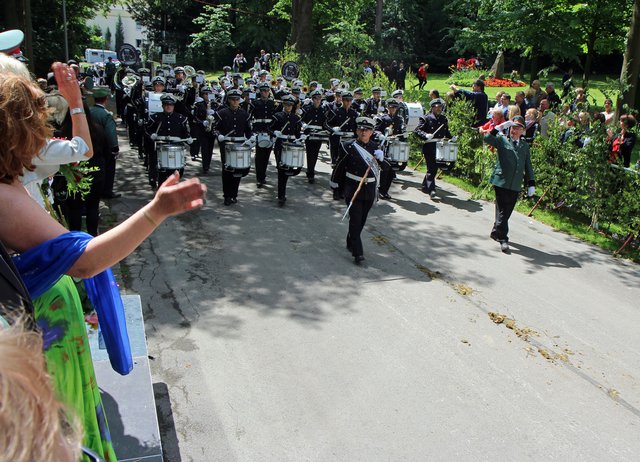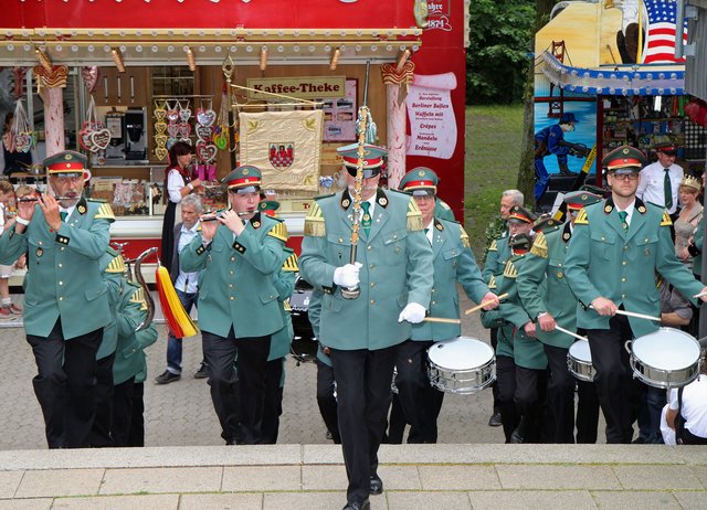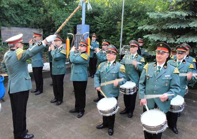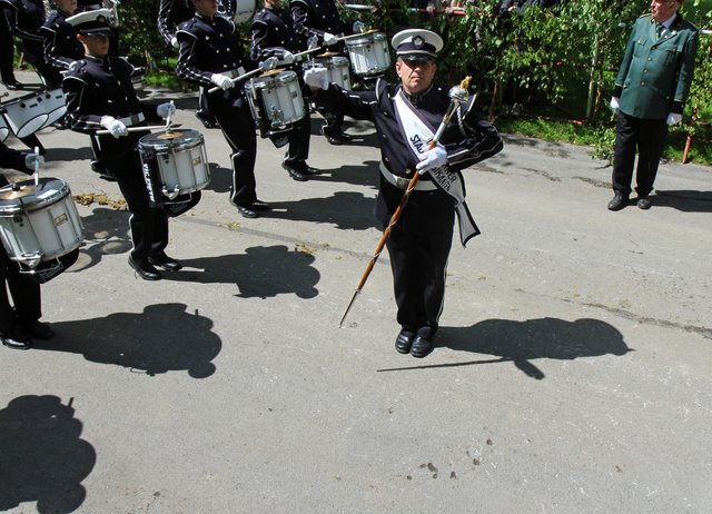 Mit sorgenvollem Blick ging der Blick der Schützen am Antreteplatz gegen den grauen Himmel, ob die Wolken erneut ihre Schleusen öffnen sollten. Doch es sollte nicht so kommen. Denn bis auf ein paar Regentropfen am Stadtbahnhof hielt das Wetter. Und wenig später auf der Paradestraße, kam sogar die Sonne raus, was einige Kameraden dazu veranlasste, dies dem scheidenden Königspaar Ralf Wille und Kirsten Greitzke zuzuschreiben, welches ja bekanntermaßen als Regen-Regenten in die IBSV-Geschichte...