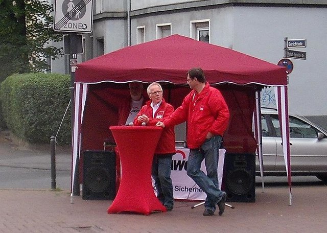Eine Bank im Essener Norden? Die SPD - hier mit Theo Jansen, Martin Schlauch (Altenessen) und Karlheinz Kirchner (Vogelheim) - geht im Verbreitungsgebiet des Nord Anzeigers als Favorit ins Wahlrennen. Foto: Gohl