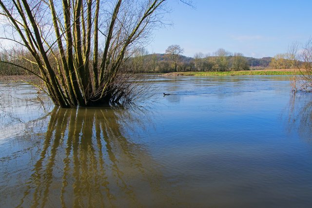 Die Trauerweide am Mühlenteich wurde kräftig gestutzt