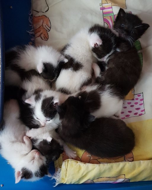 Es ist wie jedes Jahr..Katzenbabys überall..Vor kurzem bekamen wir, der Verein"Strassenkatzen Wesel und Hamminkeln e.V."den Notruf,:7 Flaschenkinder wurden an einer Autobahnraststätte von Urlaubern gefunden. Sie müssen schon tagelang dort gelegen haben, da sie sehr dünn waren. Das Kleinste wog 170 Gramm....Somit hat nun unsere Babypflegestelle alle Hände voll zu tun, die Kleinen müssen alle drei Stunden ihr Fläschchen haben, danach Popo reiben, da sie noch nicht alleine abführen können. Hat man das Letzte fertig, hat das Erste schon wieder Hunger. Dazu kommen tierärztliche Besuche, Durchfall und Erbrechen hatten sich eingestellt..Durch den Durchfall müssen sie auch ständig gesäubert werden..An einer anderen Fundstelle tauchten 1 Katzenmutter mit ihren 3 Jungtieren auf, die an Gehirnhautentzuendung erkrankt waren. Eins verstarb zeitnah , die anderen Zwei und ihre Mutter müssen täglich zum Tierarzt. So ist die Liste lang,, wir sitzen jeden Tag stundenlang mit unseren kleinen und grossen Schützlingen beim Tierarzt. Da wir keine Zuschüsse von Städten und Gemeinden bekommen, sind wir langsam am Rande des Möglichen angekommen. Für die Kastrationen an verwilderten Hauskatzen haben wir Zuschüsse vom Land bekommen, und auch schon an die 100 Tiere kastriert. Aber auch hier muss der Rest von uns aufgebracht werden. Die Liste der noch zu kastrierenden Tiere ist lang.. Nun unser Aufruf an Sie, liebe Tierfreunde da draussen: Bitte helfen Sie uns, diese extreme Jahreszeit zu überbrücken, durch Ihre Spende an unser Vereinskonto. Jeder Euro zählt!!
